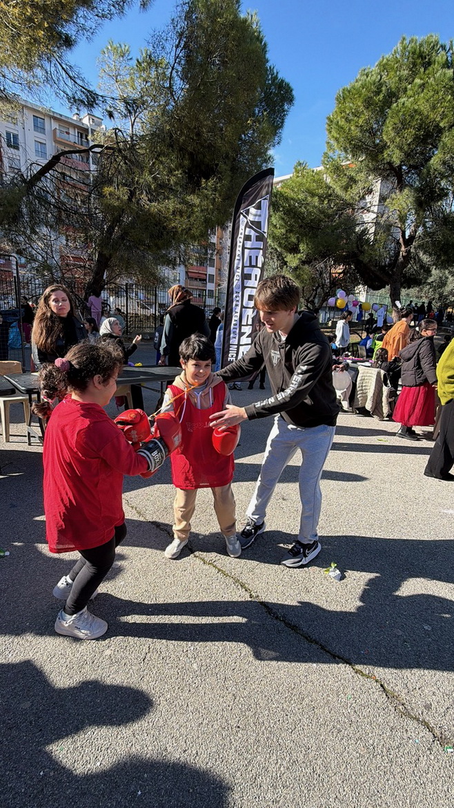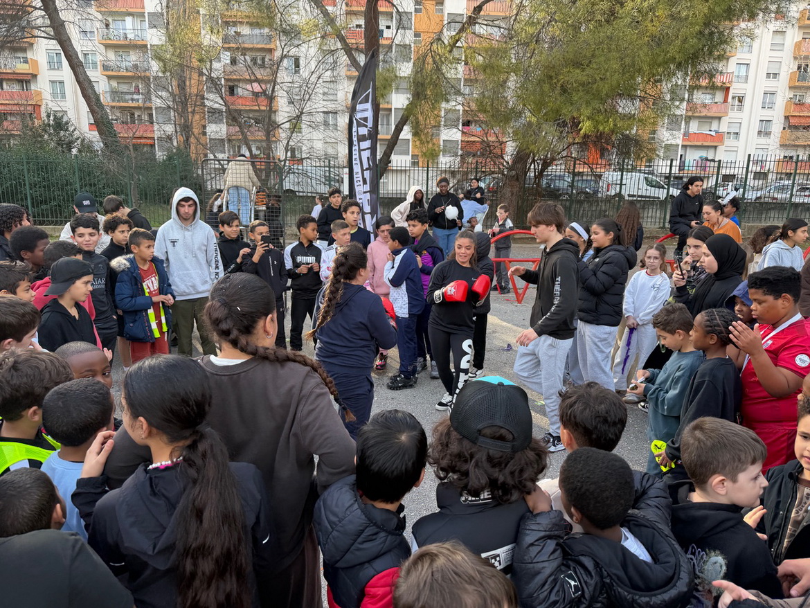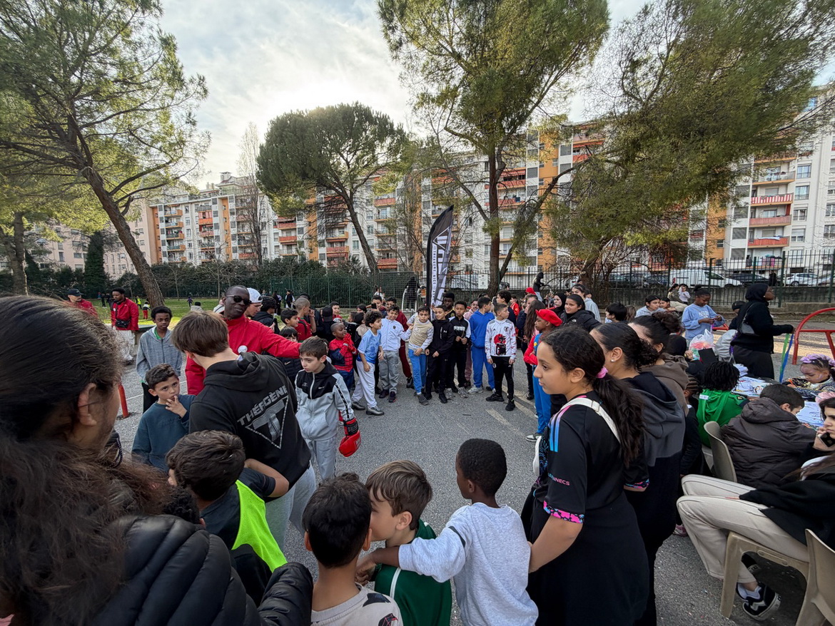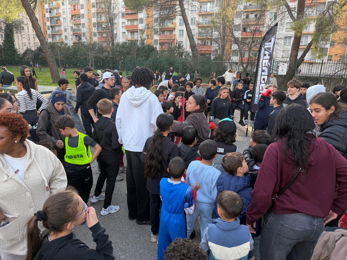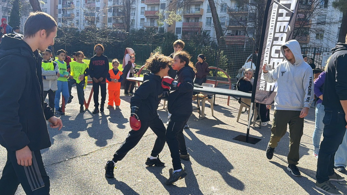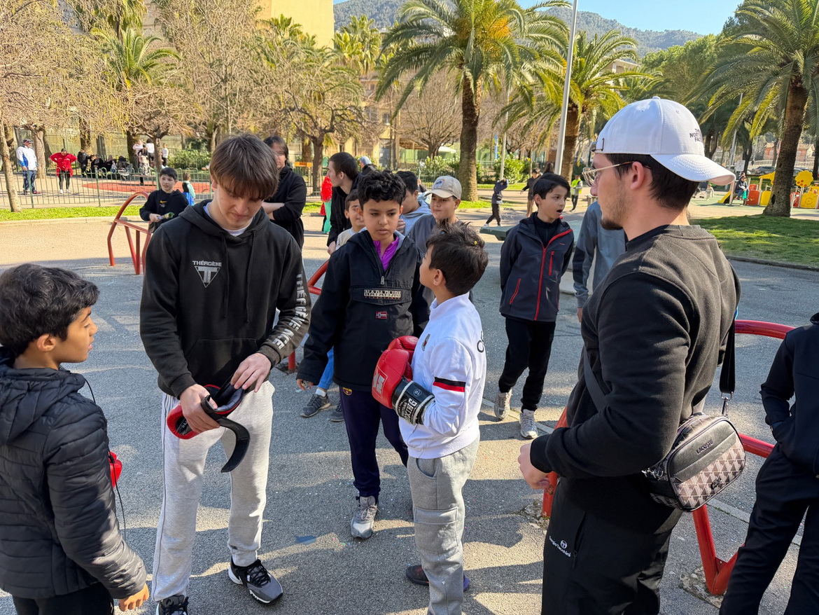 Он даёт ребятам из кварталов попробовать себя - немного жёстче, по-настоящему, но строго под контролем наших волонтёров и спортсменов.