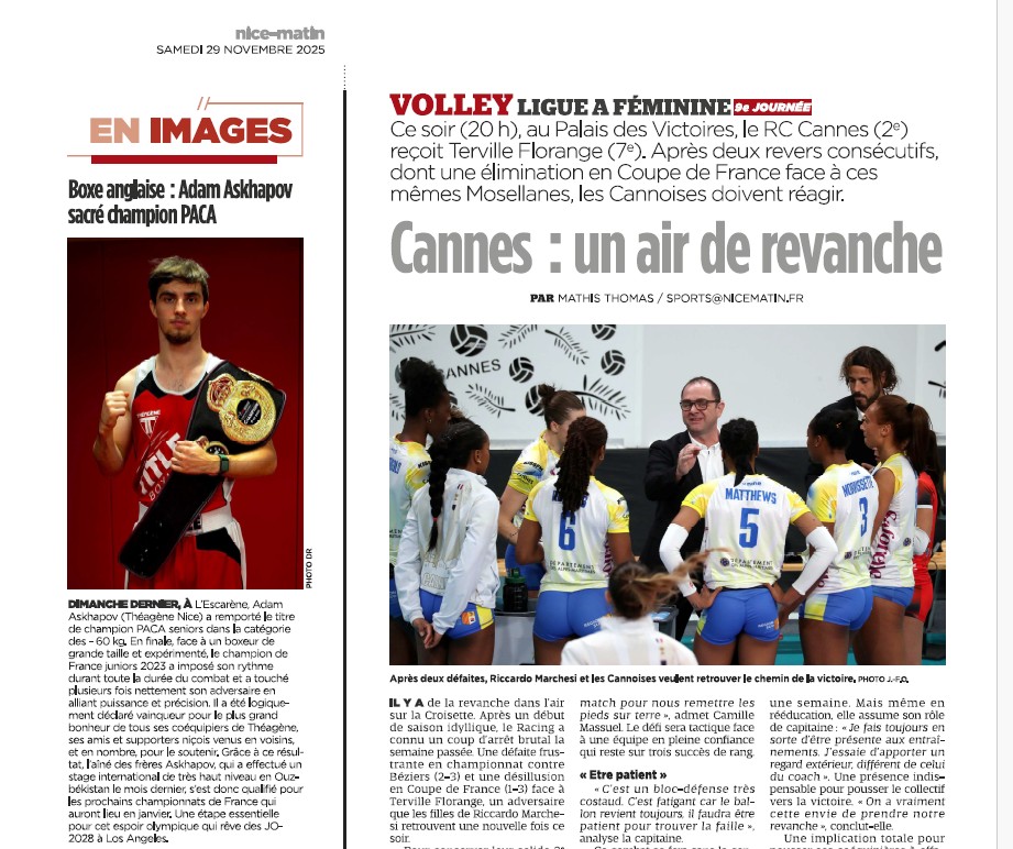 Nice-Matin отдельно отметил, что наши спортсмены достойно представляют город Ниццу, поднимая его флаг в региональных и национальных соревнованиях.