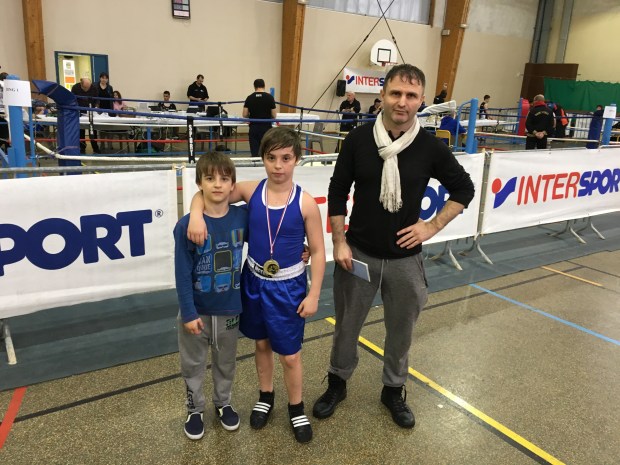 2 апреля в г.Лансоне состоялся интеррегиональный чемпионат по боксу среди пусен и бенжамен, где встречались чемпионы 4 регионов Франции. Напомним, что это последняя стадия для этой возрастной категории, ибо они не отбираются на чемпионат Франции, и можно сказать, что победившие здесь, становятся в своём роде чемпионами Франции. На этот чемпионат был отобран лишь один наш маленький боксёр-Адам Асхапов. Адам без труда разделался со своими соперниками, где один в 1/4 финале вообще не вышел на ринг и победа досталась без боя. Но в финале оказался против очень хорошего боксёра, но и тут Адам оказался на голову выше. Было видно, как серьезно он подошёл к подготовке к этому чемпионату. В итоге Адам, как и Магамед Арсаев, который после победы на этом же уровне был отобран на чемпионат Франции, стал первым чемпионом такого уровня в боксе в истории Вайклуба. Напомним, что Адам был наказан отцом и тренером после объявления четвертных оценок в колледже, и не тренировался больше недели, а только учился.