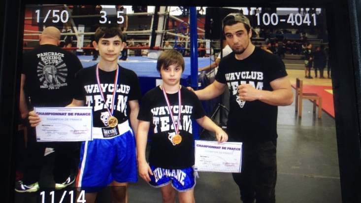 В одном из последних репортажей мы рассказывали, что боксер из «Вайклуб» Магомед Арсаев, впервые в недолгой истории клуба единоборств, стал чемпионом Франции. В эти же дни двое других юных спортсменов «Вайклуб» выступали на первенстве Франции по панкратиону. Соревнования проходили в городе Гриньи (под Парижем). В то время, когда главный тренер «Вайклуб» Магомед Асхапов отправился с Арсаевым на боксерское первенство на запад Франции, второй тренер Мехди Дакаев ехал в Гриньи с Адамом Асхаповым (11 лет) и Султаном Джамалдиевым (13 лет). Так получилось, что спортсмены «Вайклуб» выступали в одно и то же время в разных концах Франции. И так случилось, что команда по панкратиону сразу столкнулась с проблемами, которые пришлось решать Магомеду Асхапову, который находился за полтысячи километров и выводил ученика на ринг. Дело в том, что из-за отсутствия французского гражданства наших спортсменов не допускали на первенство Франции. Магомед Асхапов использовал все свои связи и дружеские контакты, дозвонился до президента FFKMDA (Федерация кикбоксинга, муай-тай и панкратиона). В итоге наши юные бойцы приняли участие в состязаниях и добились наивысших результатов. Султан Джамалдиев в весовой категории до 50 кг. и Адам Асхапов в категории до 40 кг стали чемпионами Франции по панкратиону. Таким образом, сразу три спортсмена «Вайклуб», включая Магомеда Арсаева, за эти выходные завоевали золотые медали чемпионов Франции. Воистину, замечательное достижение, с чем мы поздравляем спортсменов и их тренеров Магомеда Асхапова и Мехди Дакаева.