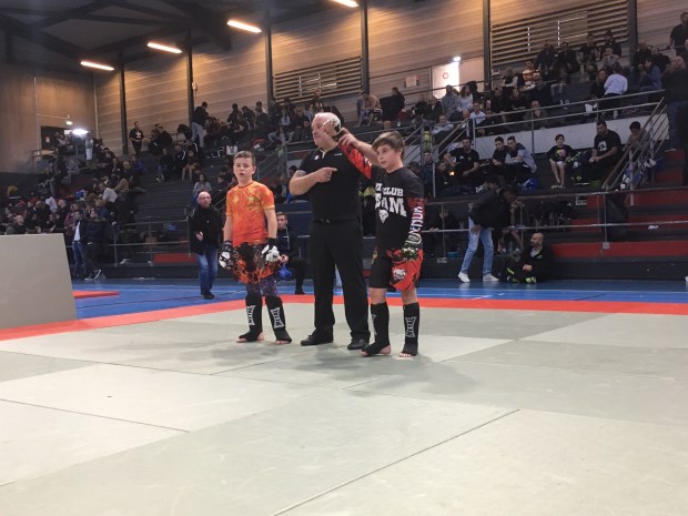 Хочется сказать отдельно за Изновра, которого дисквалифицировали вместе с его соперником. Дело в том, что соперник Изновра, находясь в партере, начал бить кулаком по голове Изновра, и судья не успел его остановить, как Изновр, разгорячённый этим, ударил соперника по голове, после чего спортсмены встали и соперник снова напал на Изновра. Наш тренер Магомед в ту же секунду буквально влетел на ковёр и оттащил Изновра, который готов был продолжить схватку. Соперников еле удалось успокоить их тренерам, но рефери решил дисквалифицировать обоих, на что наш тренер не стал возражать. Магомед поругал Изновра и объяснил, что если бы он сдержал свои эмоции, то его соперника бы дисквалифицировали, и ему бы досталась победа, и он прошёл бы на чемпионат Франции. Но потом, когда Изновр отошёл, признался, что ему нравится его характер, напоминающий егошний в детстве, и что он будет работать над ним. Как он говорит, жалко, что тренер самого Магомеда не сумел найти ключ обуздать его горячий характер, ибо обузданный горячий характер может достичь многого… Возможно, что его сын Адам,который стал чемпионом юга Франции, сделает то, что не смог отец. У Адама очень буйный характер, за что отец его часто ругает. На этом чемпионате он, как всегда , продемострировал волю и зрелищность. Победив очень зрелищно полуфинальный бой тэйкдаунами и ударной техникой, в финале он встретился со своим давнишним соперником, которому так несправедливо присудили победу в их последнем противостоянии на гала турнире в Ницце. Но на этот раз Адам подготовился основательно, и не дал никаких шансов усомниться в своём превосходстве. Адам доминировал как в стойке, так и в партере. Напомним, последние каникулы он провёл на сборах и соревнованиях по ММА в России, где проходил сборы в разных клубах у разных тренеров, одних из лучших в своих дисциплинах.