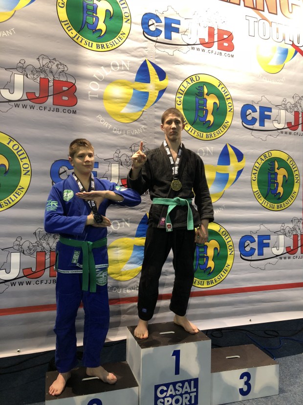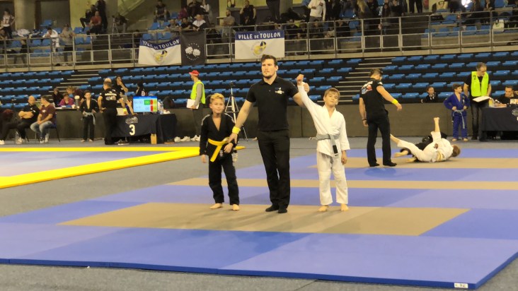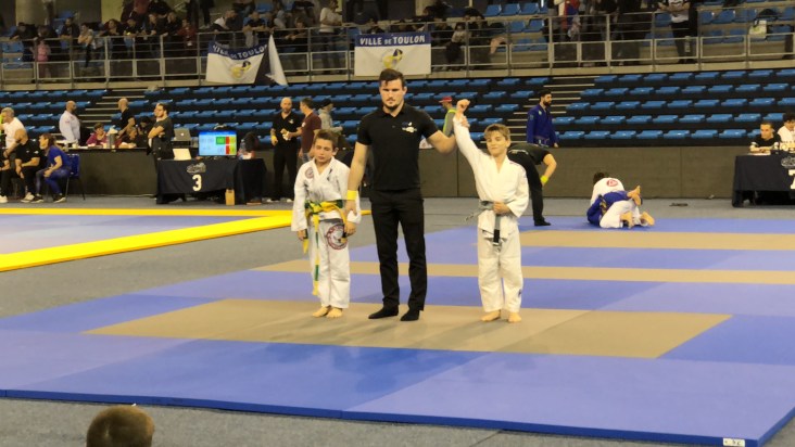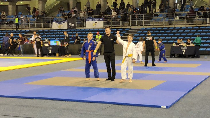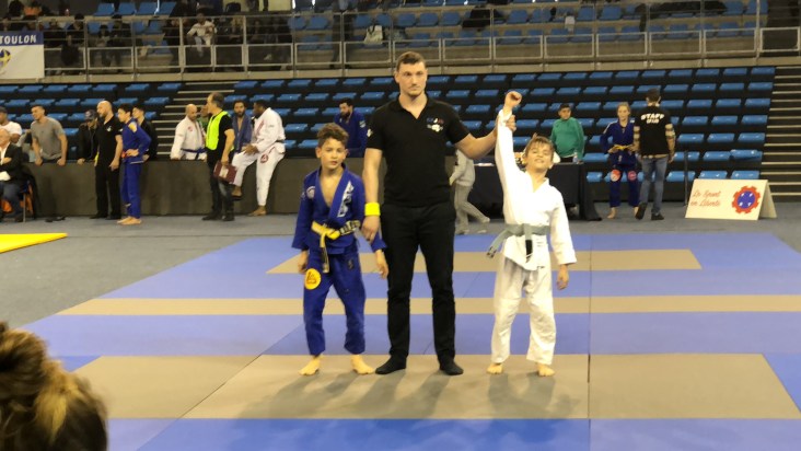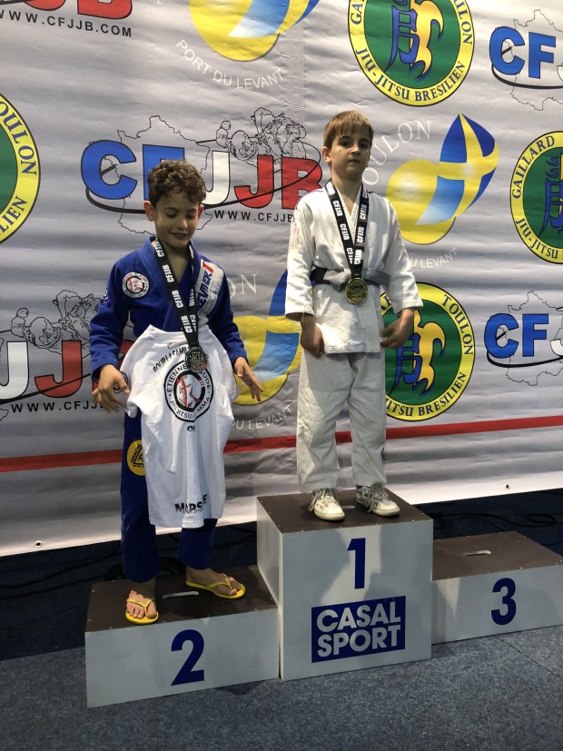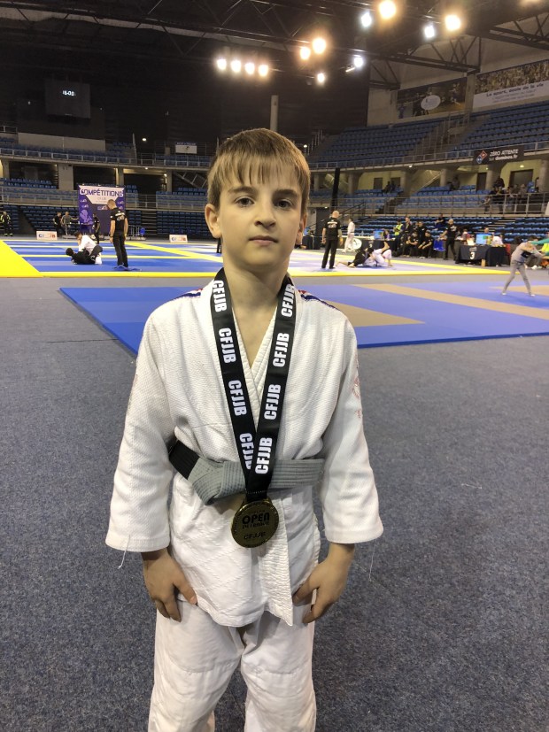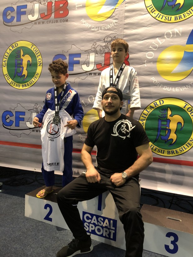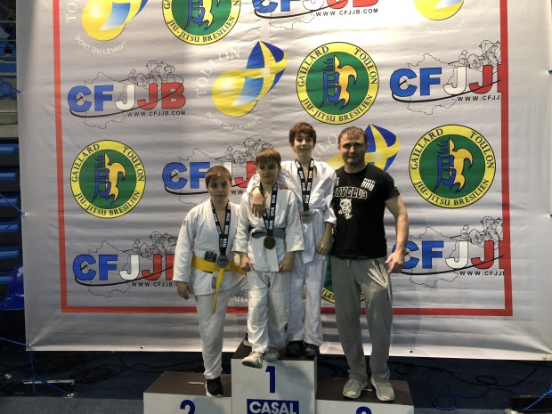 Наши маленькие бойцы выступали на Опен Франции по Бразильскому джиу-джитсу, который приравнивался Открытому Чемпионату Франции, состоявшемся в минувшее воскресение, 11 марта, в городе Тулон. Лицензированные y GFTeam France и тренирующиеся в партере в нашем партнёрском клубе Боксинг Сквад, наши мальнекие борцы Сайди Исханов, Малик Кайхаров и братья Адам и Амин Асхаповы, которые выступали в разных весовых и возрастных категориях, принесли каждый по медали. Сайди, который впервые участвовал на соревнованиях, удивил всех. Хотя он этим видом спорта занимается лишь несколько месяцев, тренер Боксинг Сквада Саиф решил его выставить на столь высокий уровень. И он не ошибся. Он уверенно выиграл свою полуфинальную схватку и вышел в финал. Неизвестно как бы закончилась и финальная схватка, если бы рефери не остановил, посчитав опасным, когда соперник пытался сделать удушающий приём.у В итоге Сайди довольствовался бронзовой медалью, что не плохо для таких соревнований даже для опытных бойцов.