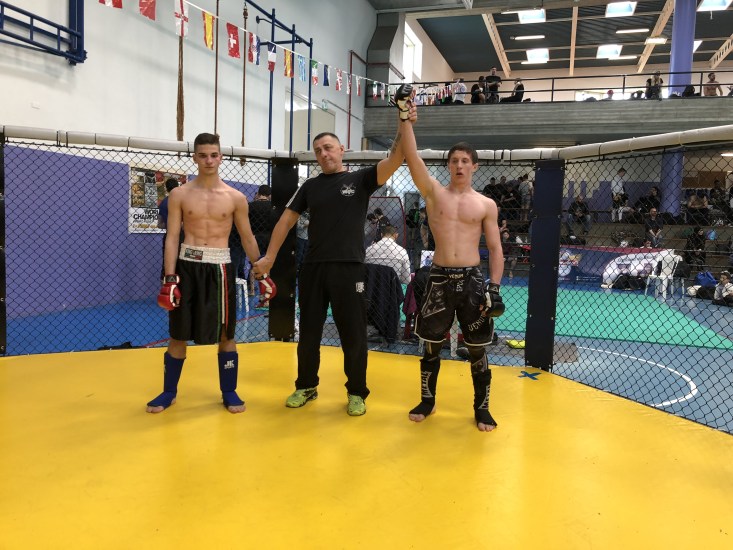 Adam a suivi en Boxe Light. L’adversaire était fort, et la bataille fut intense, presque comme des adultes, mais avec un net avantage pour Adam. Mais ce qui arriva après, lorsque l’arbitre leva la main de l’adversaire d’Adam, fut encore plus surprenant : l’injustice de la décision des juges dans ce combat fut tellement évidente que les entraîneurs des autres clubs venus de France et même de Russie, qui ne nous connaissaient pas, sont venus soutenir le Wayclub, exhortant le Président de la WFC et l’organisateur à réagir, ce qu’il fit en convoquant d’urgence tout le monde sur le tapis. Notre entraîneur a de nouveau reçu la promesse du Président qu’il examinera la plainte et si nécessaire, le résultat sera changé.