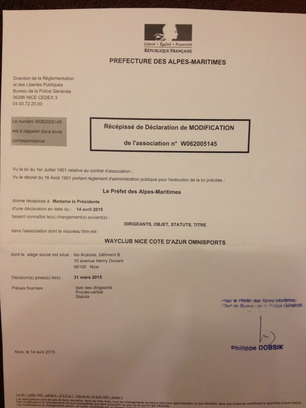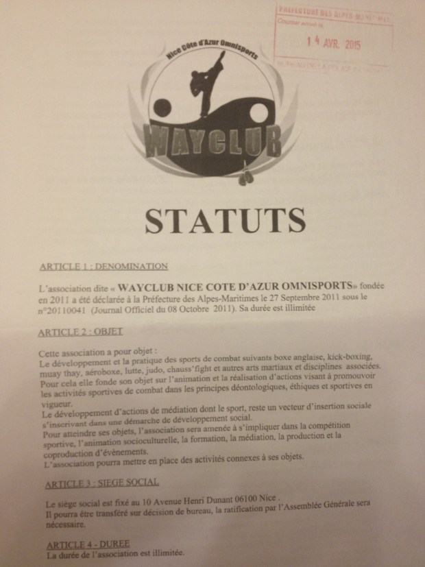 Наш клуб официально объединился со Спортивным Объединением Лазурного Берега NCAO, взяв под себя в этом Объединении всё, что касается контактных видов спорта, таких, как Английский Бокс, Кикбоксинг, Панкратион, и стал называться WAYCLUB NCAO. В отличие от других секций NCAO , наш клуб имеет особый статус-он остался полностью автономным, имея свой собственный устав, своего Президента, Бухгалтера, Секретарей и свой банковский счёт. Так же он останется в независимом сотрудничестве с Французской Федерацией Бокса, с Французской Федерацией Контактных Видов Спорта, с Французской Федерацией Борьбы. Поздрaвляем с этим успехом нашего главного тренера и основателя клуба Маго, и желаем дальнейшего процветания с его партнёром и Президентом NCAO Жан-Пьер Скарфоном.