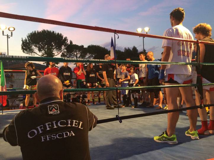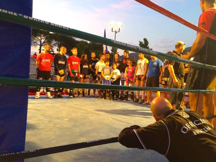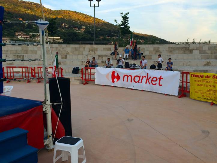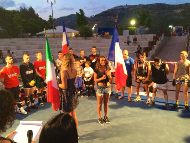 В итальянской коммуне Кампороссо, расположенной в живописном уголке региона Лигурия, 27-го июня состоялся вечер единоборств «International Arena Fighting». В турнире приняли участие команды по кикбоксингу, муай-тай и шосс-файт. Днем на импровизированном ринге соревновались любители в кик-лайт, а вечером на ринг, оборудованном под древнеримский Колизей, вышли профессионалы. И открытие этих профессиональных боёв предоставили двум нашим маленьким кикбоксёрам Адаму Асхапову и Султану Джамалдиеву. Зная своего друга – нашего тренера Маго,на ринг судить поднялся сам организатор турнира. И пацаны не подвели. Адам и Султан устроили такое шоу, что итальянская публика,некогда просившая “хлеба и зрелищ” на таких же амфитеатрах Древнего Рима, была в восторге . Наш тренер Маго готовил этот сюжет уже две недели. Пацаны работали каждый день. В бою они провели несколько инсценированных нокдаунов ногами в голову и в живот с разворотов , падая на подстил ринга с такой силой,что и арбитр вошёл в раж,поняв в чём дело,и начал считать нокдаун. Народ неистовствовал. Иной раз арбитру приходилось на самом деле останавливать поединок,ибо наши парни,подготовленные ударником,коим является наш тренер, начинали колотить друг друга не на жизнь,а на смерть. Такими аплодисментами не сопровождались даже последующие бои профессиональных бойцов. Даже после соревнований,когда публика заметила,как наш тренер со своей командой покидала амфитеатр,они начали им аплодировать. Поздравления нашим детишкам,будущим чемпионам и их тренеру !
