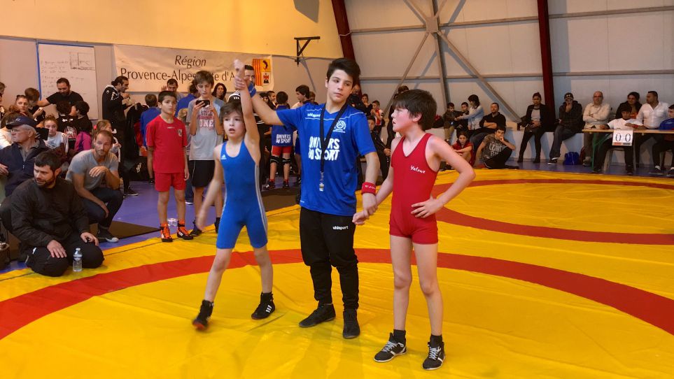 Основным направлением нашего является бокс и кикбоксинг. Однако, главный тренер клуба Магомед Асхапов старается культивировать в своем заведении разные виды единоборств. Поэтому его воспитанники являются универсальными спортсменами, которые могут соревноваться и в каратэ, и в дзюдо, и в смешанных единоборствах. А с некоторого времени Wayclub работает совместно с клубом NCAO, объединяющим разные виды единоборств. Организацию NCAO возглавляет Жан – Пьер Скарфон (Jean-Pierre Scarfone), одновременно являющийся президентом борцовского клуба Ниццы (Lutte Club de Nice). Таким образом, юные спортсмены Waycluba занимаются еще и вольной борьбой в LCN. После соревнований по боксу в Кань-сюр-Мер и кикбоксингу в итальянском Сан-Ремо, несколько спортсменов “Wayclub”, совместно с клубом борьбы LCN, принимали участие в региональном чемпионате по вольной борьбе, который прошел 5-го декабря в пригороде Тулона – городке Сен-сюр-Мер. На этих соревнованиях вновь отличился 10-летний Адам Асхапов, который неделю назад в Сан-Ремо был признан лучшим кикбоксером турнира. Выиграв три поединка, Адам стал победителем соревнований. Изновр Патаев тоже вышел победителем в трех схватках, но уступил в финальной встрече и занял 2-е место. “Организация соревнований была не самой удачной. Изновр провел четыре схватки в течение получаса и просто устал к финалу” – объяснил нам Магомед Асхапов.