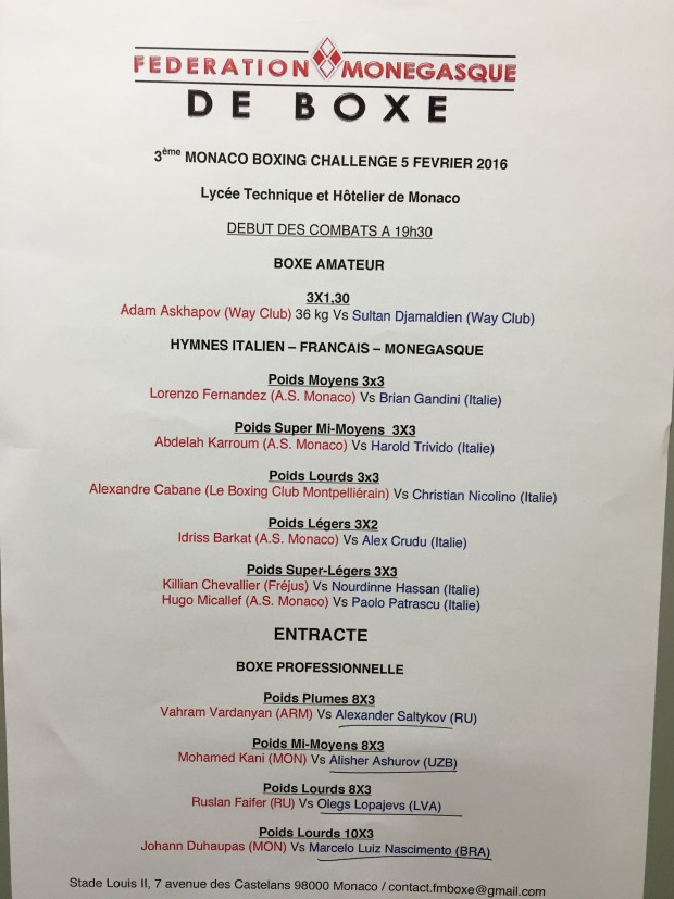 Большой ажиотаж в зале вызвало выступление Хуго Микаллеф (Hugo Micallef). Этот молодой спортсмен, коренной житель Монако, был участником первенства Европы и является главной боксерской надеждой маленького Княжества.