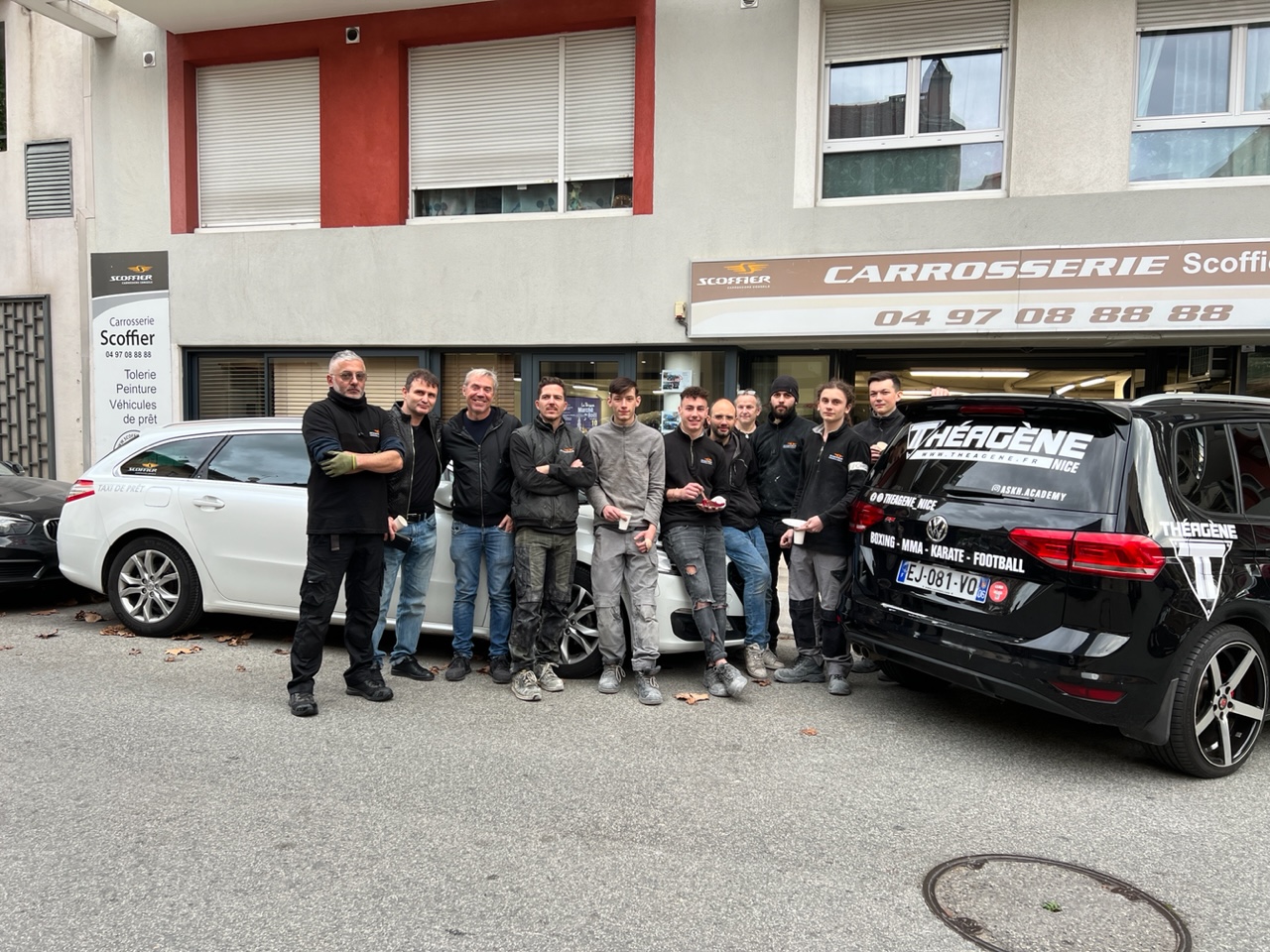 На этот раз Райман приготовила торт и другие сладости для нашего партнёра, группу гаражей "Скофье". Напомним, что эта группа уже много лет помогает нам в наших поездках, будь то на соревнования или на другие мероприятия, выделяя нам транспорт, а так же чинит наш автомобиль. Директором гаражей является друг нашего тренера Магомеда Асхапова Г-н Филип Барберо.