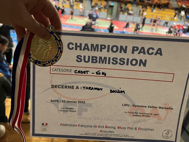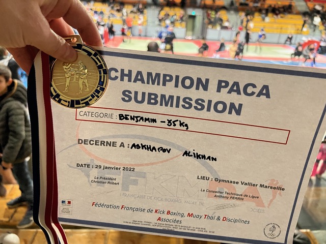 В выходные 29-30 января 2022 года в городе Марсель состоялся официальный региональный чемпионат Прованс — Альпы — Лазурный Берег по дисциплинам грэ́пплинг, К-1 и фулл-контакт под эгидой Французской Федерации Контактного Спорта. На него наш старший тренер Магомед Асхапов повёз 7 своих воспитанников, которые привезли в Ниццу 6 золотых и 1 бронзовую медалей, тем самым завоевав 7 билетов на национальный чемпионат. Но обо всём по порядку: