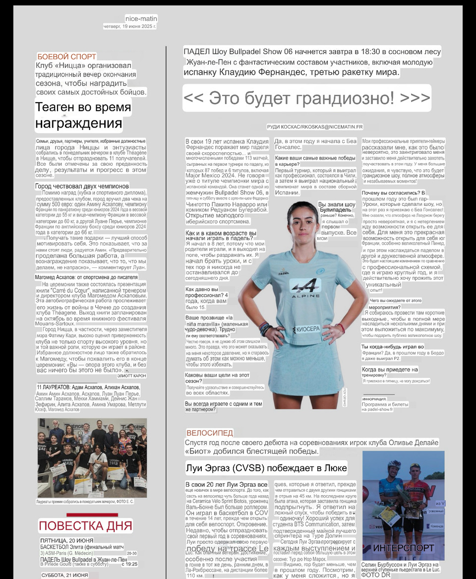 На момент завершения этого текста стало известно, что самая читаемая газета Ниццы «Nice Matin » опубликовала статью на полстраницы с фотографией с этого мероприятия.